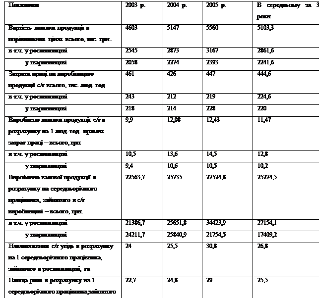 | Показники | 2003 р. | 2004 р. | 2005 р. | В серед-ньому за 3 роки | 2005 р. до 2003 р., % |