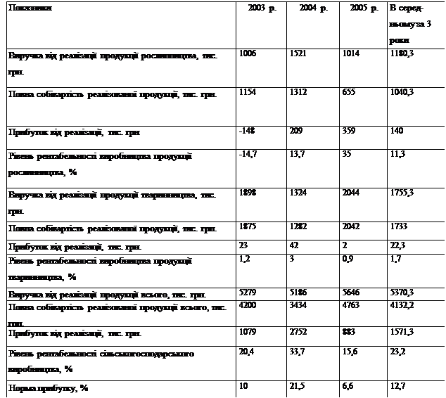 З Таблиці 3.10 ми бачимо, що за даний період в середньому виручка від реалізації продукції склала 1180,3 тис. грн. , повна собівартість реалізованої продукції склала 1040,3 тис. грн. , прибуток від реалізації склав 140 тис. грн. , рівень рентабельності сільськогосподарського виробництва склав 23,2 % та норма прибутку в середньому склала 12,7%.