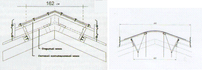 конструкций, крыша - из двух слоев шифера, проложенных стекловатой толщиной 14 см. Коров содержат на привязи. Для удаления навоза применяют скребковый транспортер, по коньку кровли размещено 6 вытяжных шахт сечением 0,65x0,65 м.