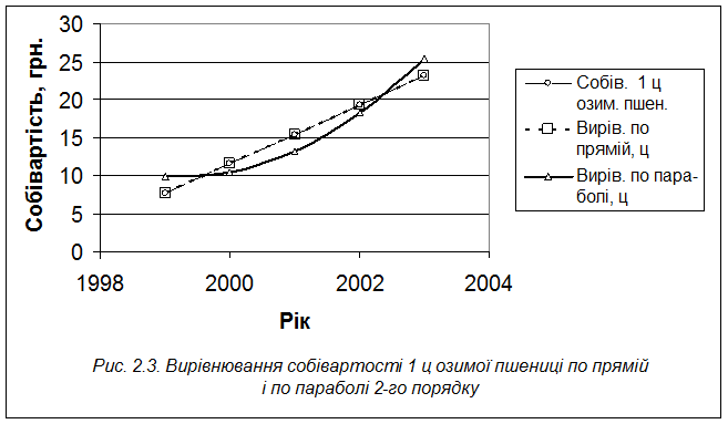 Для вивчення даної теми застосовувався аналіз рівня динаміки собівартості продукції рослинництва, вирівнювання по прямій та по параболі.