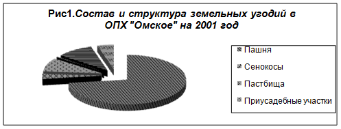Состав и структуру земельных угодий на 2001 год отобразим в виде диаграммы: