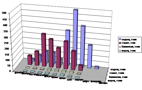 Ассортимент и объемы производства овощей защищенного грунта в 2009г. на ПТ «Можейково» представлены на следующей диаграмме: