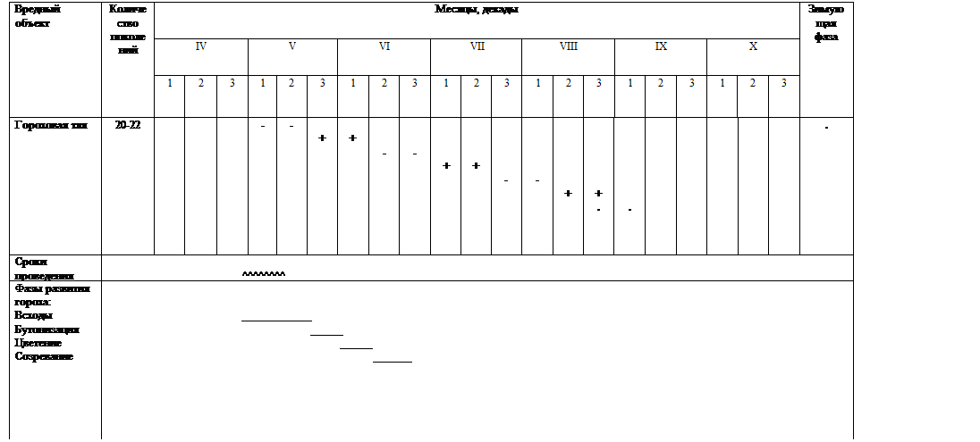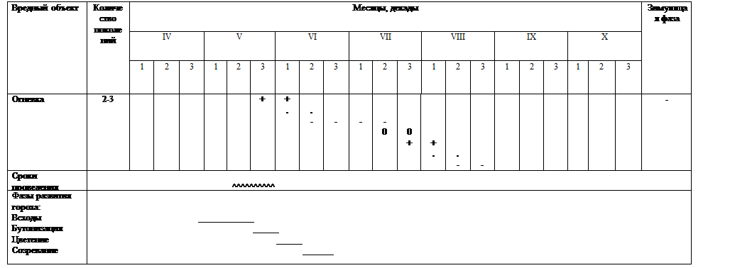 Из таблицы видно, что наибольший вред у гороховой плодожорки наносят гусеницы. Фаза, в которую вредит гороховая плодожорка – созревание. Следовательно, защитные мероприятия необходимо проводить в указанные сроки.