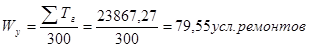 После чего определяется общая суммарная трудоемкость всех работ мастерской и рассчитывается мощность мастерской в условных ремонтах.