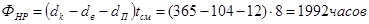 Номинальный фонд времени рабочего за расчетный период (год, месяц) определяется по формуле