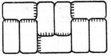 В подавляющем большинстве случаев все хранилища – секционные. Как правило, ёмкость одной секции составляет 500т в пересчёте на пшеницу, а размеры 18х18 м. Секция ёмкостью 500 т обычно подразделяется на 6 подсекций размерами 6х6 м и центральным проходом с такими же параметрами. Мешки будем укладывать тройником (рис. 2).