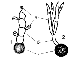 1 - Ustilago zeae, 2 - Tilletia caries (а - телиоспора, б - базидия, в - базидиоспоры)