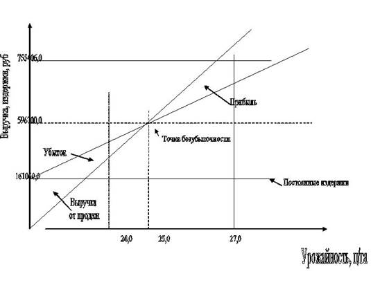 График безубыточности производства ячменя.