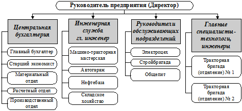 Структура управления производственной деятельностью предприятия ООО «Багаевск-Агро» складывается на основе деления подразделений по признаку производственной направленности (рис. 1).