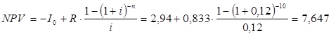 Снижение годовых эксплуатационных затрат при прочих неизменных условиях уже позволяет говорить об экономическом эффекте. Кроме того, при снижении эксплуатационных затрат мы получаем экономию денежных средств или другими словами – дополнительные денежные притоки, которые позволяют нам окупать некоторую часть дополнительных инвестиционных затрат. То есть, в случае, если величина потребных капиталовложений в новом варианте увеличится по сравнению со старым на некоторое значение, экономия эксплуатационных затрат сделает это увеличение оправданным. Исходя из 10-ти летнего среднего срока службы техники в составе МТП полеводства и снижения эксплуатационных затрат на 833 тыс. руб. можно допустить увеличение размера потребных капиталовложений не более чем на 8,3 млн. руб.