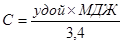 - средняя прибавка основной молочной продукции, выраженная в процентах на 1 голову с учётом базисной жирномолочности;