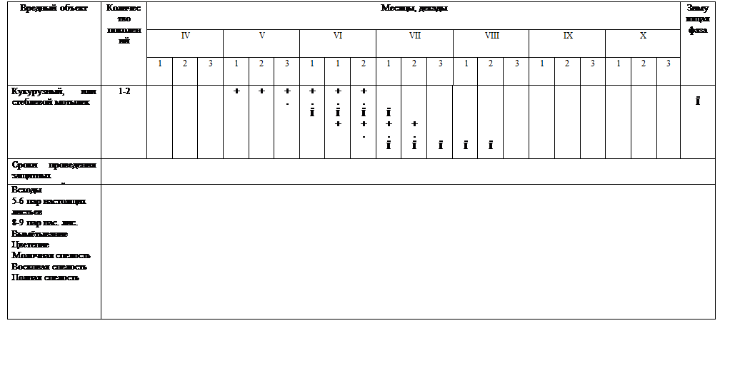 Таблица 7. Система мероприятий по защите кукурузы от вредителей и болезней.
