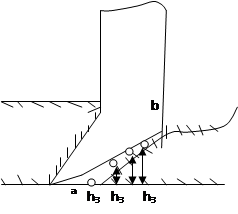 Почту в той или иной мере можно отнести к сыпучей среде. Поэтому частицы ее, раздвинутые щеками сошника, осыпаются, как только щеки освободят их от своего воздействия. При осыпании почва заходит в подсошниковой полости по некоторой наклонной поверхности ab (рис. 2.6). тогда семена, попавшие на подсошниковую поверхность осыпавшейся почвы, оказываются заделанными на разную глубину h 1 , h 2 , h 3 .