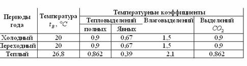 Таблица 2. Расчетные параметры внутреннего воздуха.