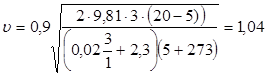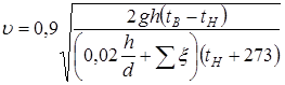Скорость воздуха в поперечном сечении вытяжной шахты,