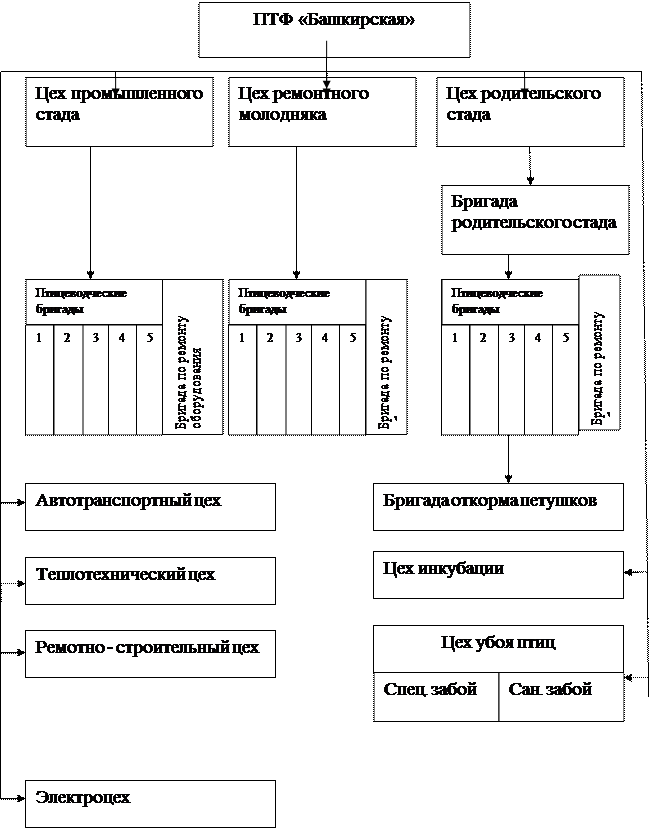 Рисунок 1.1 Организационная структура птицефабрики «Башкирская»