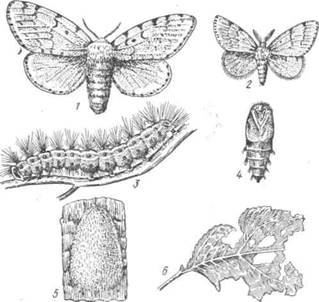 Непарный шелкопряд (Ocneria dispar L.). Это один из самых распространенных вредителей лесов, садов и зеленых насаждений (рис. 89).