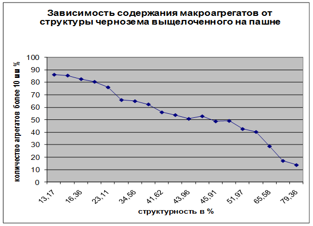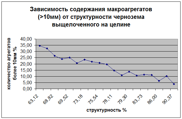 В результате двухлетних исследований установлено, что структурное состояние целинных земель хорошее, пашни удовлетворительное. На степень структурности значительное влияние оказывает содержание агрегатов более 10 мм.