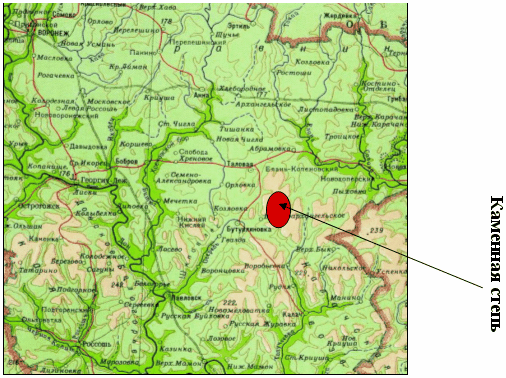 Рисунок 1 – Каменная степь на карте Воронежской области