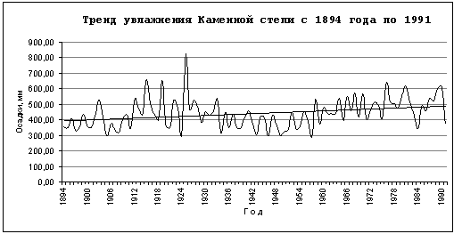 Рисунок 2 – Тренд увлажнения Каменной степи с 1894 по 1991 года