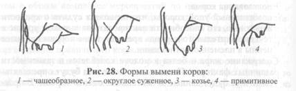 Вымя у коров бывает чашеобразное, округлое суженное, «козье» и примитивное