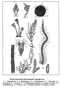 Фітопланктон - являє собою сукупність мікроскопічних водоростей, які вільно існують у товщі води. У товщі води утримуються завдяки малим розмірам, великому вмісту води у клітинах. Поширений у верхніх добре освітлених шарах води.