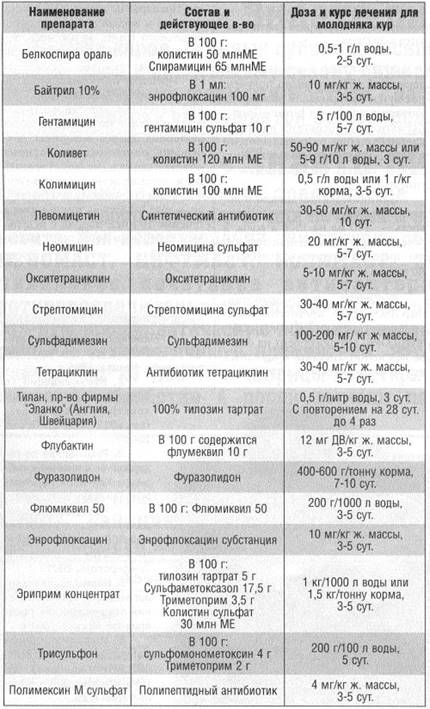 Точная программа вакцинации и терапевтический эффект медикаментов зависит от многих деталей и прежде всего таких, как эпизоотическая обстановка в регионе и хозяйстве, где выращивается молодняк, и материнский иммунитет, переданный цыплятам родителями, откуда цыплята и / или инкубационное яйцо получено. Следовательно, ни одна программа не может быть рекомендована как универсальная для всех хозяйств выращивания ремонтного молодняка.