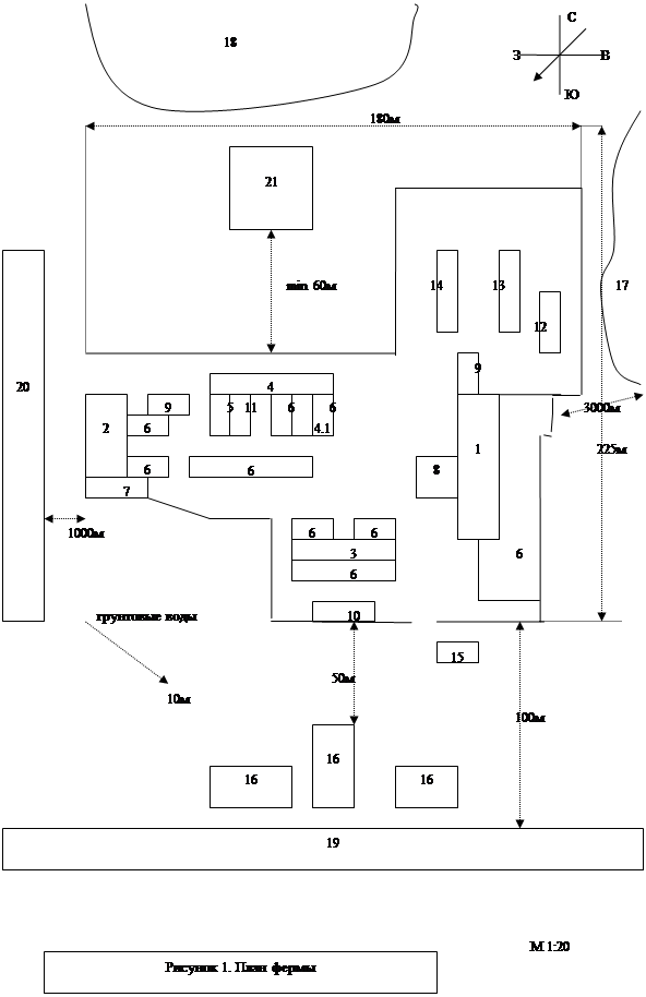 Водохранилище находится на расстоянии 3000м от фермы (соответствует норме – 2000м)