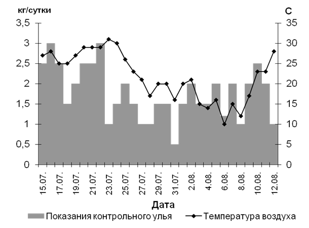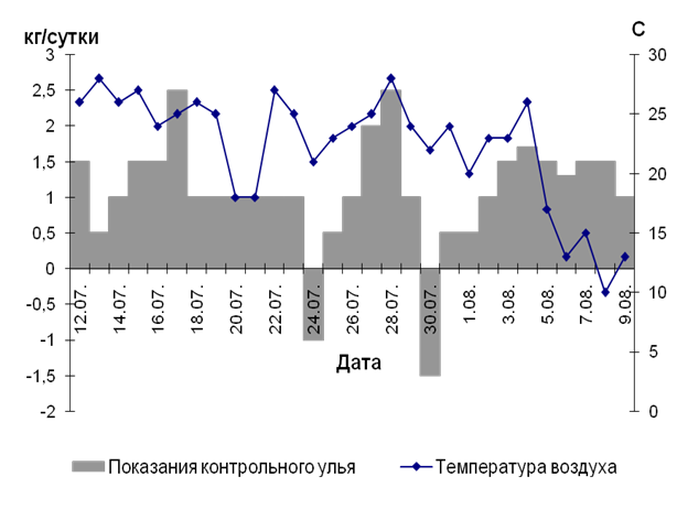 Определенной подсказкой для организации медосбора служат показания контрольного улья. Ежедневные наблюдения за показаниями весов позволяют пчеловодам своевременно расширять гнездо и отбирать зрелый мед из ульев.