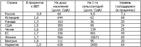 Отказ от государственного регулирования АПК является одной из главных причин деградации сельскохозяйственного производства и неэффективности аграрной реформы. Уровень государственной поддержки сельского хозяйства России несопоставим со странами с развитой рыночной экономикой.