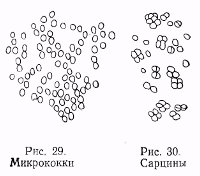 Виды рода Micrococcus образуют на МПА довольно разнообразные колонии: чаще – мелкие и средних размеров (2–4 мм в диаметре), но у некоторых видов – широко разрастающиеся по поверхности среды; матовые, влажные, блестящие и даже маслянистые; плоские и выпуклые; гладкие, зернистые, мелкоскладчатые, бугристые, иногда радиально исчерченные; пастообразной консистенции, иногда слизистые, реже сухие и плотные; чаще всего белые, белоснежные, серые, реже бесцветные, иногда буроватые, желто-зеленые, желто-лимонные, розовые и красные. Пигменты не диффундируют в среду. Клетки сферические, мелкие, 0,2–1,5 мкм в диаметре, одиночные и соединенные в пары, по три-четыре в ряд, или в неправильные бесформенные скопления, легко распадающиеся на отдельные элементы. Деление клетки происходит в любом направлении. Как правило, микрококки неподвижны и не образуют эндоспор.