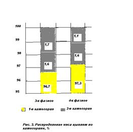 Рис. 2 Распределение мяса цыплят по категориям %