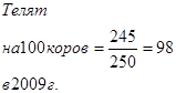 Также вырос удельный вес ремонтного молодняка в 2009 году по сравнению с прошлыми годами, что означает пополнение основного молочного стада в будущем, т.е. расширение молочной отрасли.