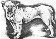 История возникновения английского бульдога начинается в середине XVI - начале XVII веков. Английское название «bulldog», что в переводе на русский означает «бычья собака», связано с первоначальным предназначением этой собаки — нападать на быка. Бульдог атаковал противника спереди, хватал за губу, язык или нос и висел, не разжимая челюстей. Травля (буль-бейтинг) была долгое время излюбленным зрелищем всех слоев населения Англии — от аристократии до простолюдинов. Английский бульдог является одной из ветвей развития древних догоообразных собак Европы. Под английским бульдогом следует понимать староанглийского бульдога, восстановлением которого в настоящее время занимаются заводчики США. По мнению заводчиков староанглийского бульдога, собаки новой породы должны быть более функциональными, обладать хорошим здоровьем и, самое главное, быть пригодными для выполнения защитных функций. По характеру собаки этой породы спокойные и уравновешенные, с сильной психикой, подвижные и энергичные. Высота в холке у кобеля выше 43 см, у суки - 40,5 см. Минимальный вес, соответственно, 38 и 30 кг. Для староанглийского бульдога, как и для современного английского бульдога, характерна короткая широкая морда с перекусом; уши — висячие, прямые или с изломом; хвост — умеренно длинный, прямой; окрас — однотонный или тигровый (рис. 1).