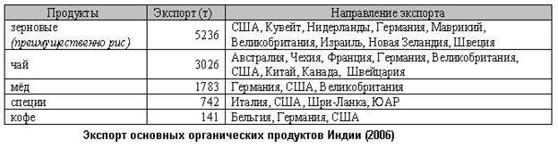 Китай является одним из крупнейших производителей и экспортеров органических продуктов питания. Основными экспортными продуктами являются чай, тыква, подсолнечник, соевые продукты, грибы, фасоль. Значительная часть продуктов экспортируются в сыром виде, после чего страны-импортеры делают дальнейшую переработку продукта в своей стране. Большинство органических продуктов предназначены для европейских стран, США и Японии. Экспорт продукции в 2004 г. оценивался в 162 млн. евро, а в 2003г. был менее 130 млн. евро.