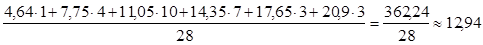При n = 28, h = 3,27 и σ = 4,74 получаем следующее значение