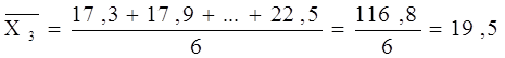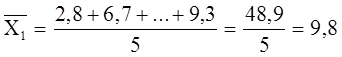 Для этого X min = 2,8 принимаем за нижнюю границу первого интервала, а его верхняя граница равна: X min + h = 2,8+3,3 = 6,1