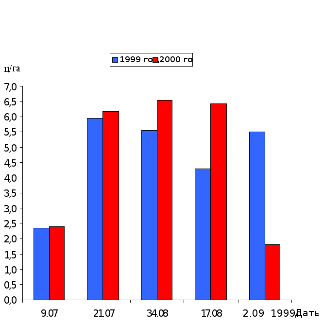 Урожайность соцветий Ромашки аптечной в 1999-2000 г.г., ц/га