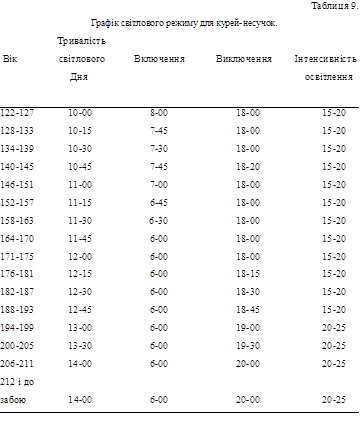 Доведено також, що для племінної птиці ефективно використовувати лише одну фазу годівлі в продуктивний період з рівнем протеїну-10℅, лізину-0,72℅, метіоніну з циститом-0,60℅