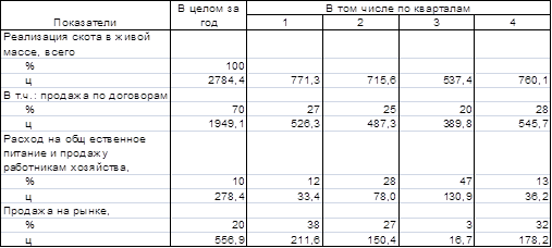 -план реализации мяса по договорным обязательствам, расход на общественное питание, продажу работникам предприятия. [3]