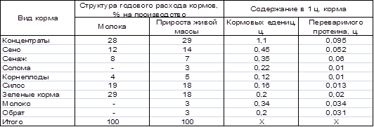 · структура расхода кормов на производство отдельных видов продукции и по отдельным группам скота;