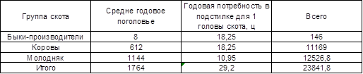 - потребности в кормах, подстилке и животноводческих помещениях;