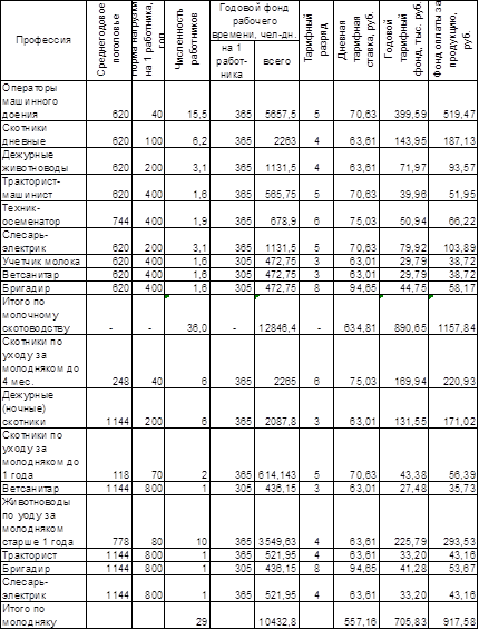 Расчет численности работников, затрат труда и фонда заработной платы на производство молока.