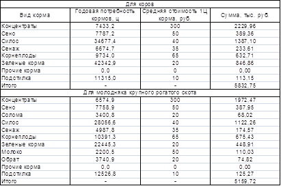Исходя из потребности в кормах и подстилке (таблица 8) определяется их стоимость (таблица 10).[3]