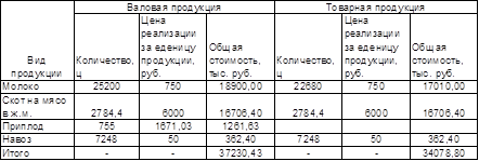 Определив количество валовой и товарной продукции (включая все каналы реализации) и ее производственную и полную себестоимость, определяем общую сумму затрат и стоимость на валовую и товарную продукцию отрасли (таблица 11, 12).[4]