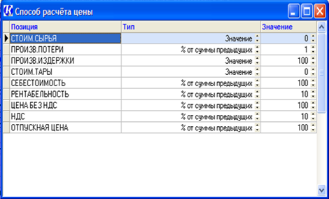 В программе также есть возможность запрограммировать способ расчета цены 1 тонны продукции с учетом всех затрат и платежей (рис. 8.).