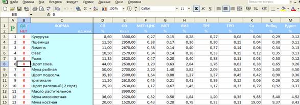 Курсовая работа: Программы оптимизации рационов кормления сельскохозяйственных животных