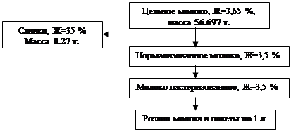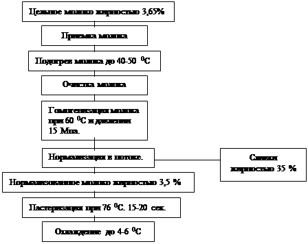 Технологическая схема производства молока пастеризованного жирностью 3,5%.