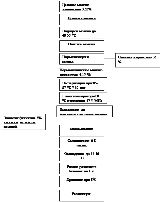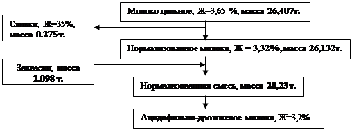 Технологическая схема производства ацидофильно-дрожжевого молока жирностью 3,2%.