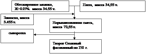 Технологическая схема производства творога “Столового” жирностью 2 %.